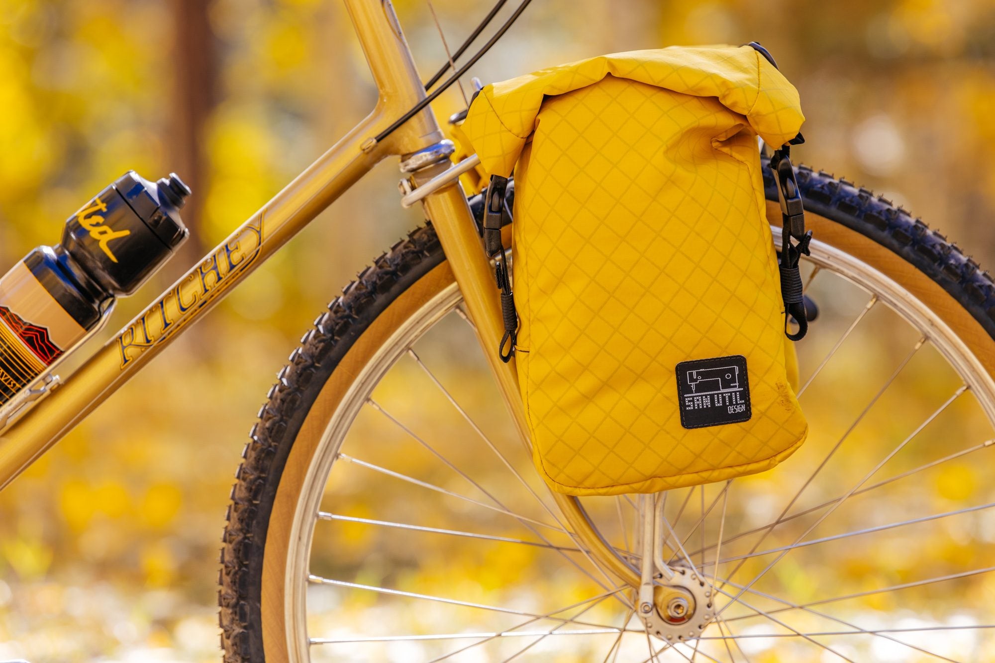 Our MIcro Panniers are also great for forks. They are small enough that they don't put to much weight on the front of the bike.