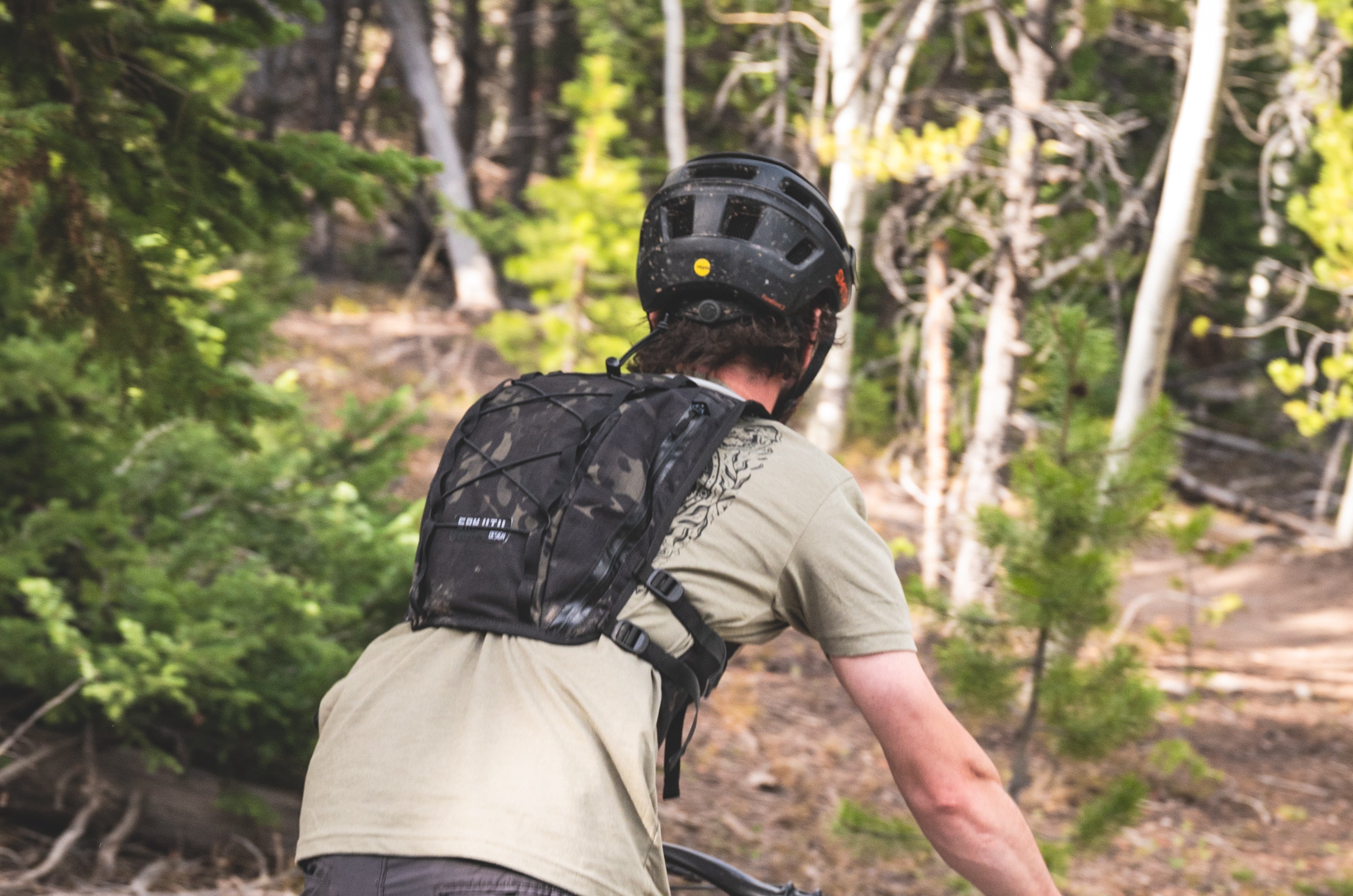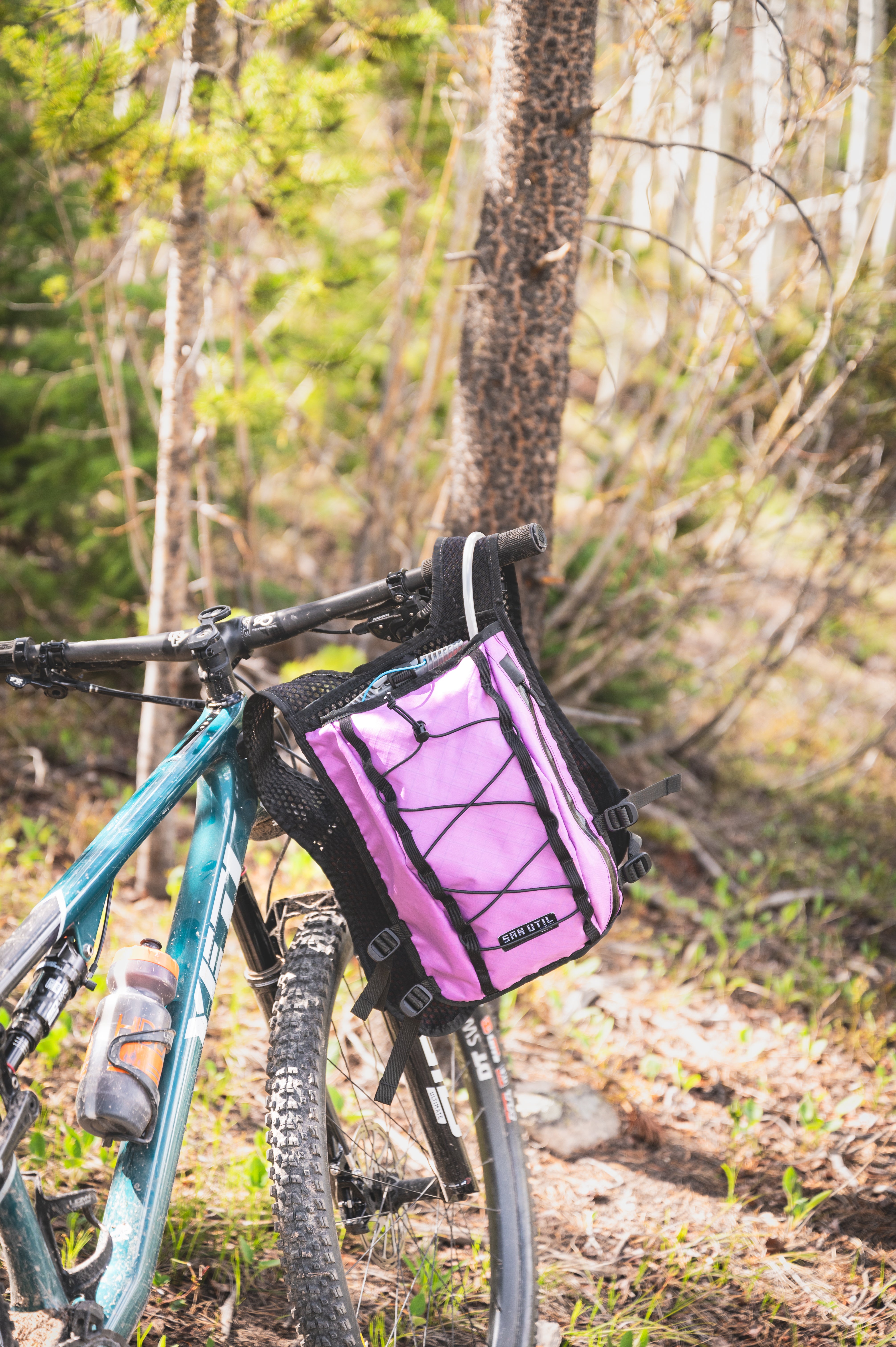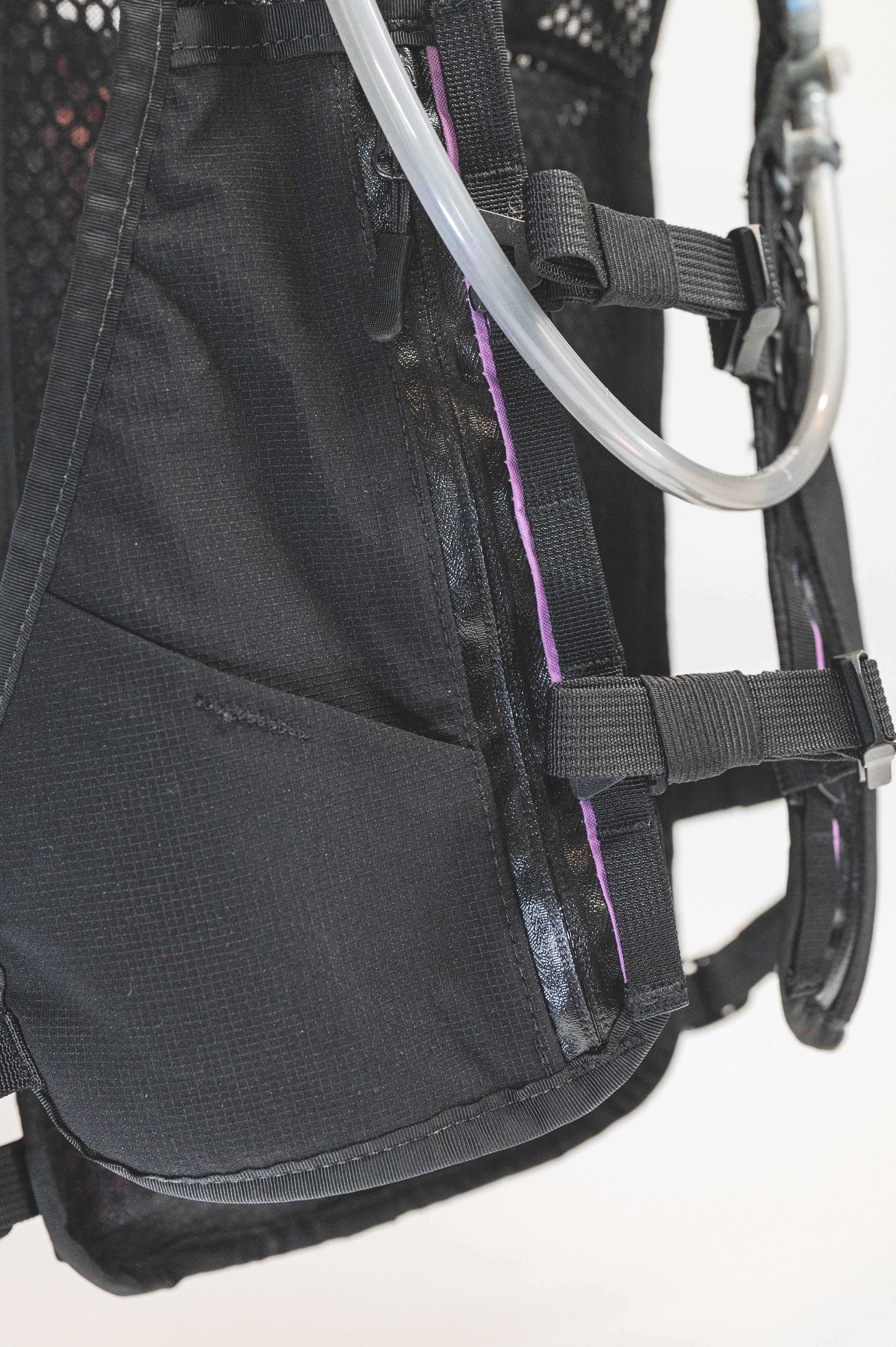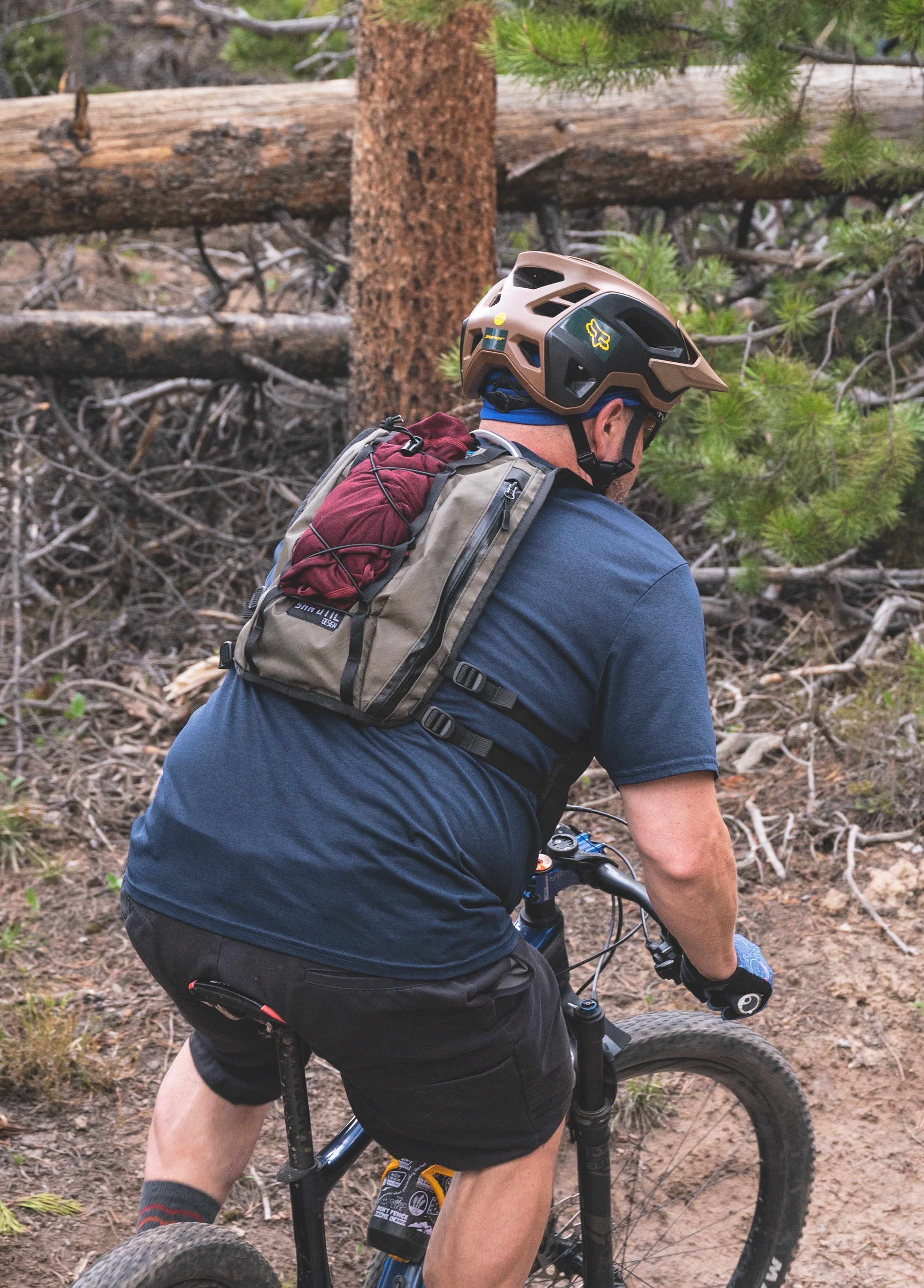 Around back, there’s a dedicated sleeve for a 2L Hydrapak bladder — and a separate main cargo zone with side access, so your zipper isn’t caked in rear-tire mud halfway through the day. Two side-access organizer pockets make gear sorting easy, and a key clip keeps your truck key out of the canyon.