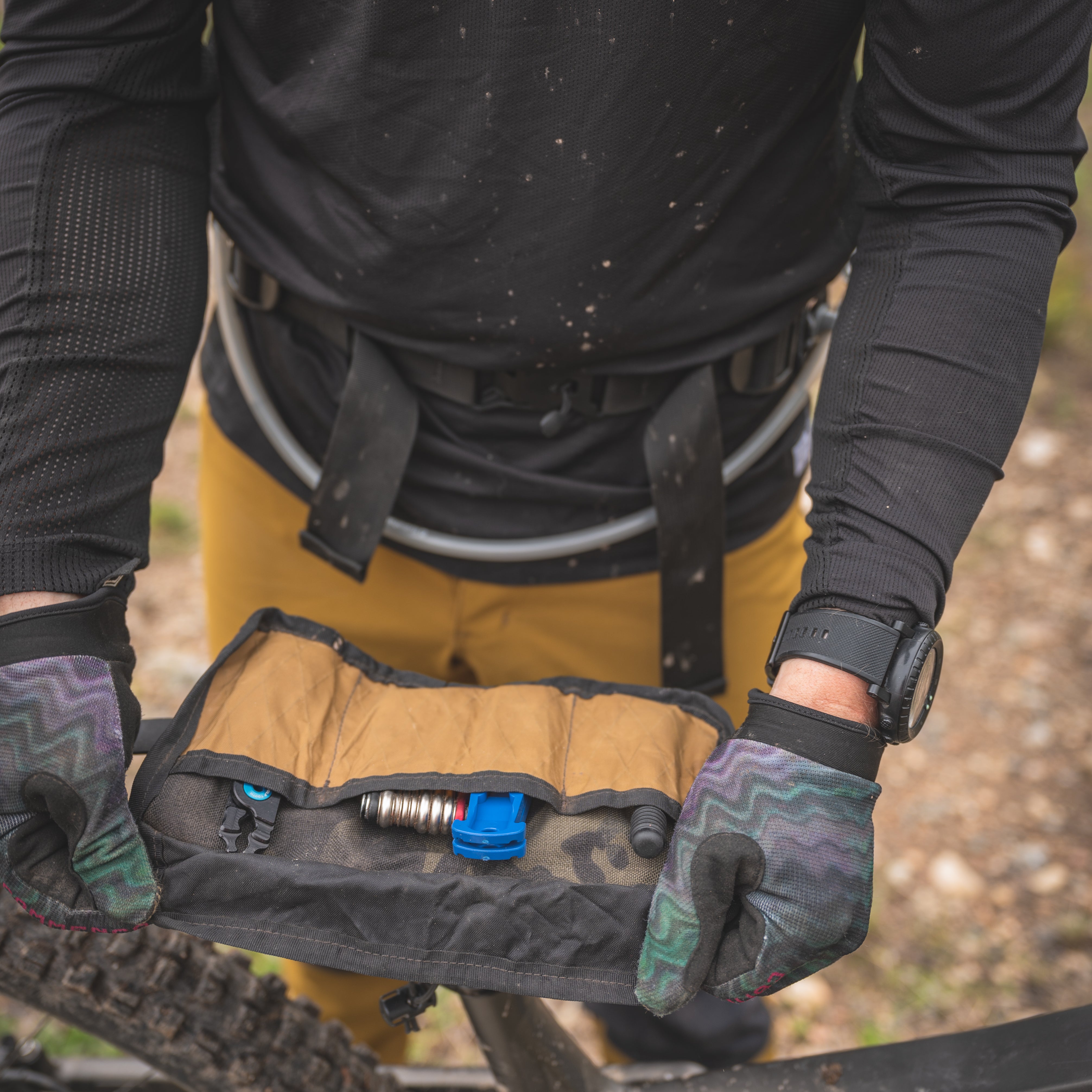 While we may have started as an adventure company, San Util owner Adam is deeply involved in Mountain Biking and racing. He developed this line of tool rolls and hip packs wanting to offer a unique option for carrying gear while riding fast and technical terrain. The line of hip packs are designed to fit to your body, overstuff to carry extra gear, and carry 2 bottle holsters each.