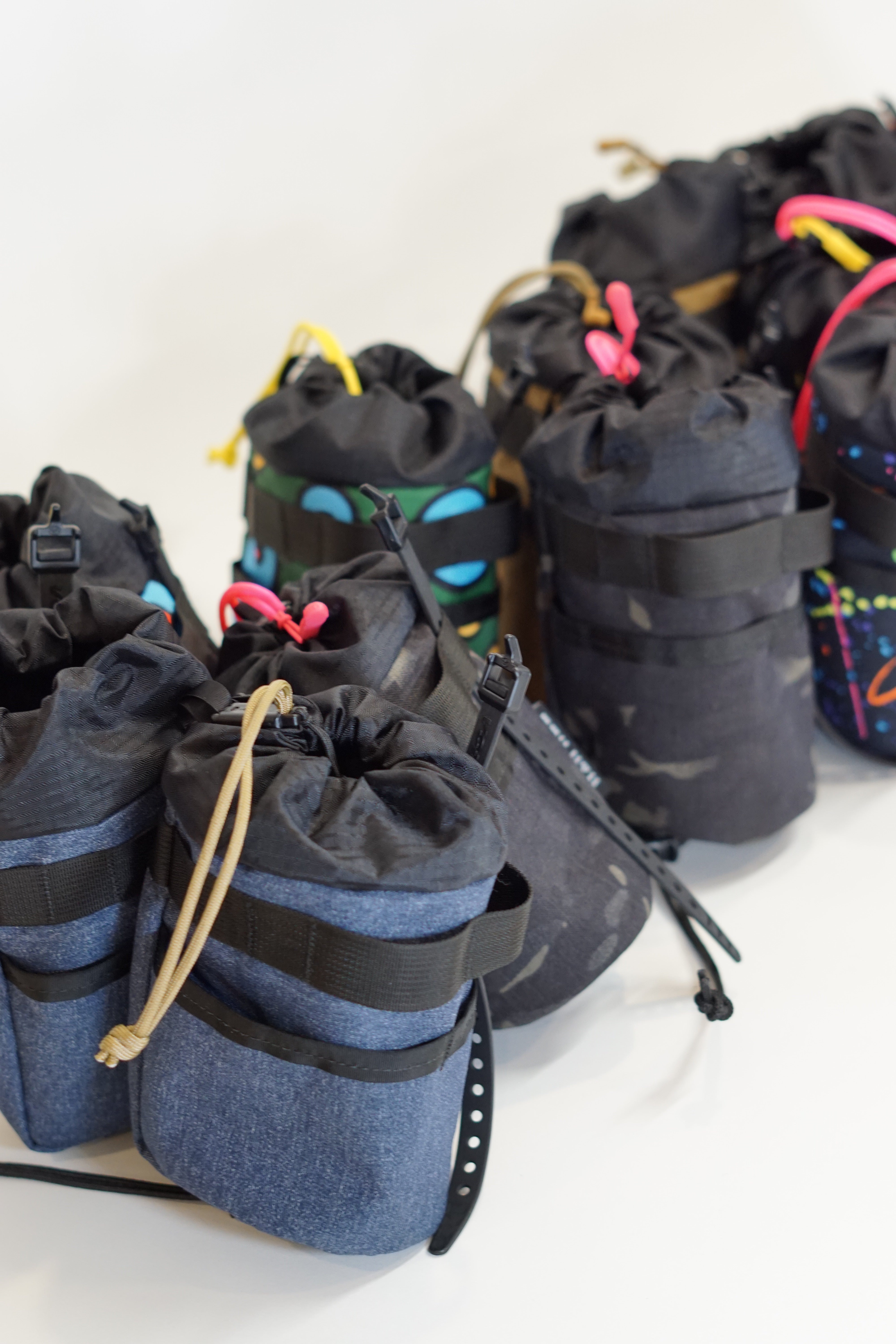 All stocked bags are on shelves in store and will ship within 1 -2 days. If you order a stocked bag with a custom bag, both will ship at the time the custom bag is sewn.
