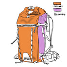 Our smaller ski pack meant to mimic some of the overall design of our flagship "Off Piste Ski Pack" with a smaller overall package and fewer features. This pack still has a massive 18" side access, is an over-stuffable roll top, can carry skis in all the fun ways and has some super versatile daisy chain webbing on the back pack. The avy pocket has 3 organizer sleeves for a probe, shovel handle, and saw.