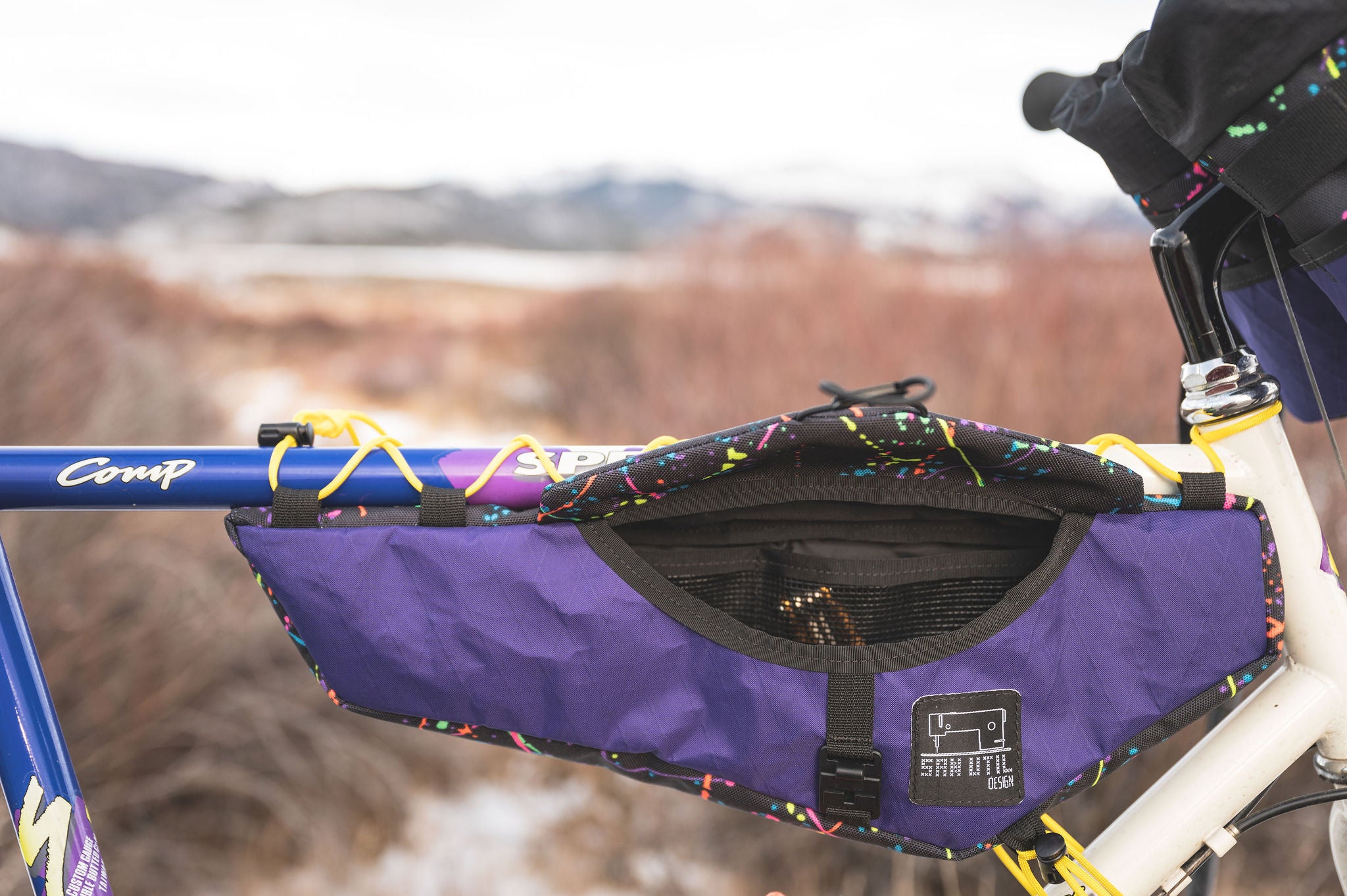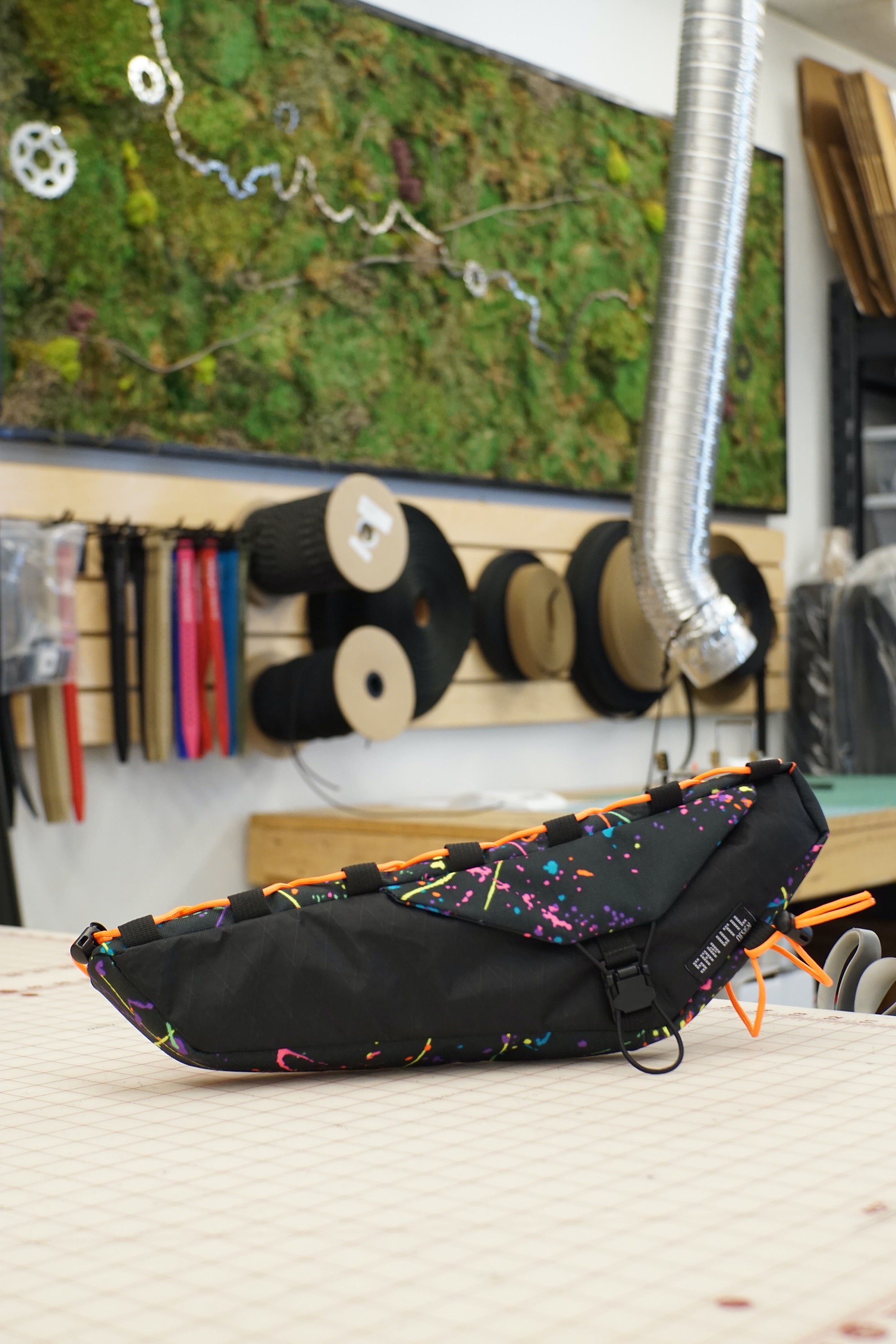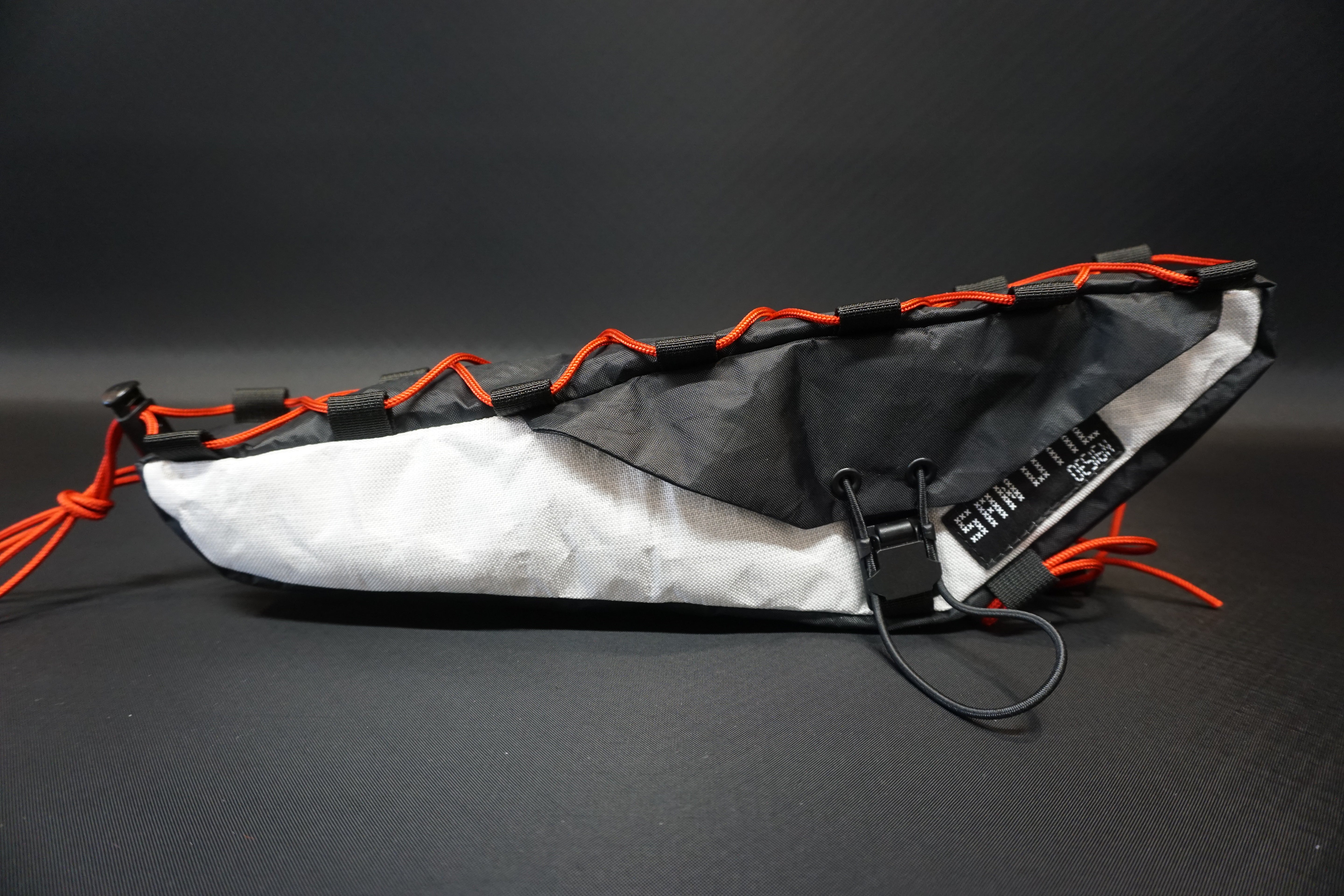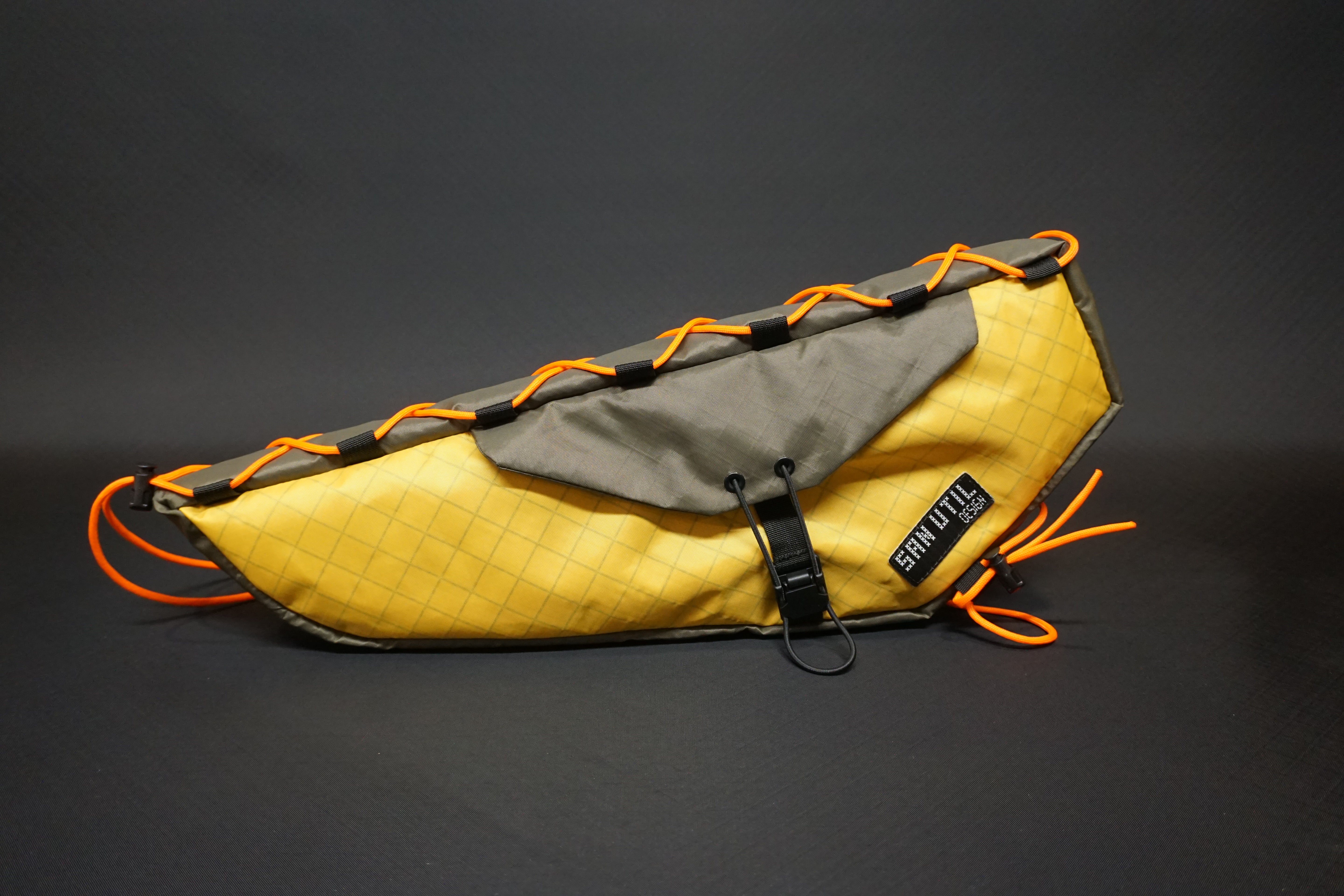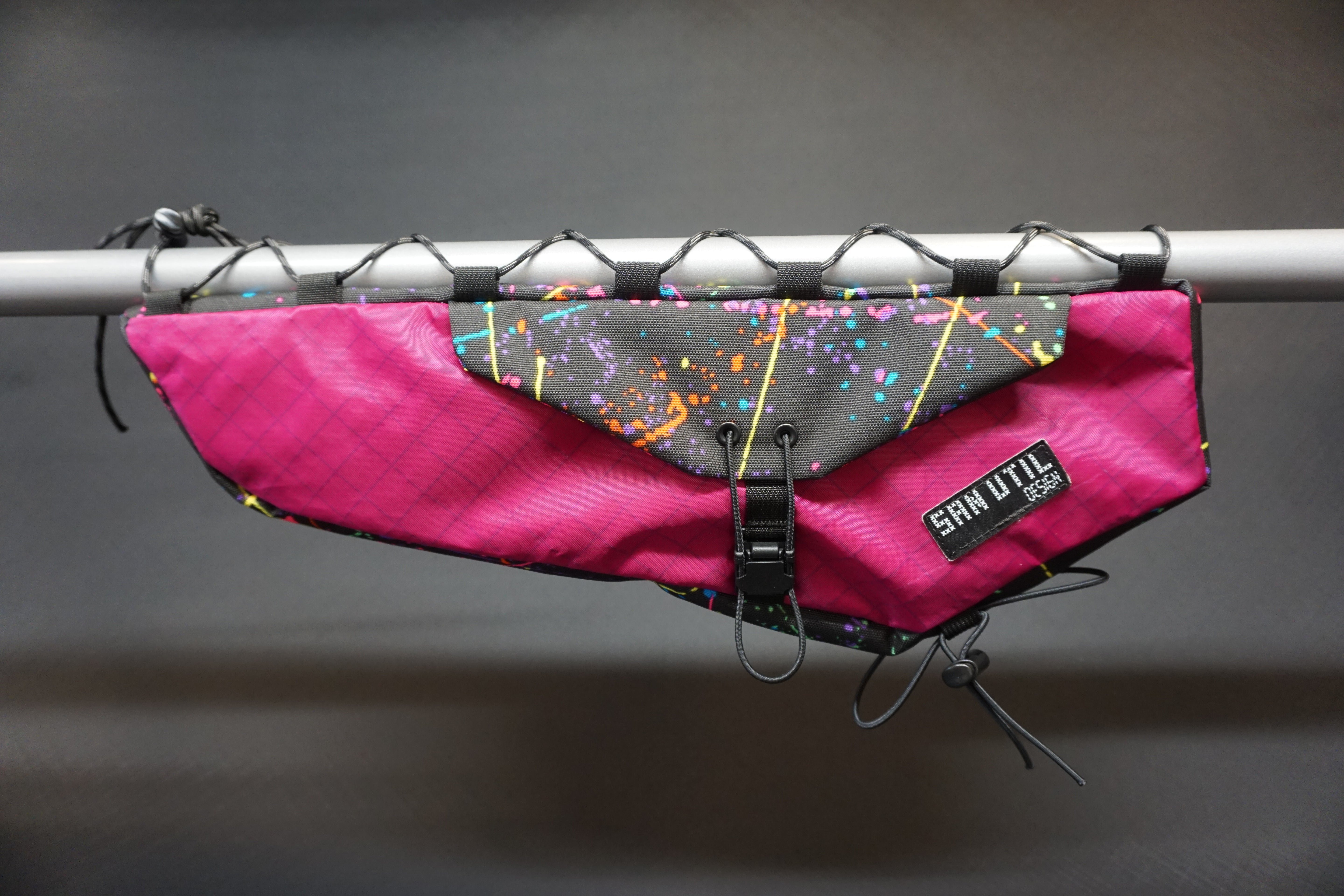 San Util’s unique patterns sold me the first time around & that remains a nice feature, but his rugged build quality is just as big a recommendation, & the bag designs customizability & ideal functionality bring this to the next level over competitors—and it’s the rare framebag that can realistically attest to keeping stuff dry, without resembling a rubberized python you adopted & took hitchhiking on your trusty steed. Hugh marks fully across!