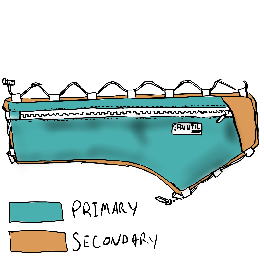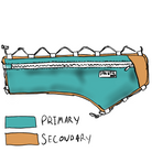 The primary color will be the two sides and the secondary is the border and the zipper cover. If you want something more custom, let me know, it just may cost more.