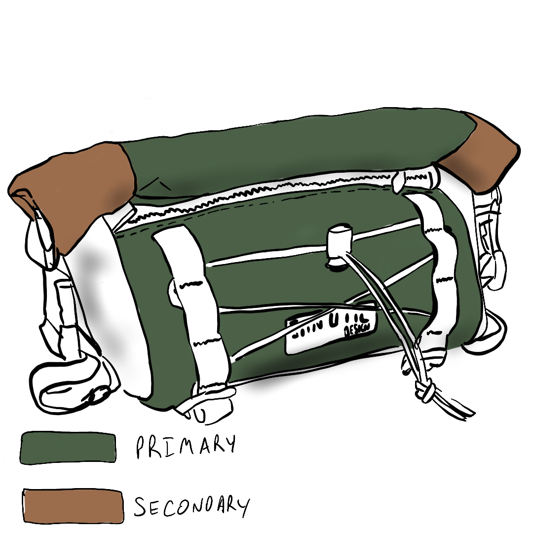 The custom Roly Poly is made to order and allows you to pick 2 colors of fabric. The primary is the main body of the bag and the secondary is the side panels.