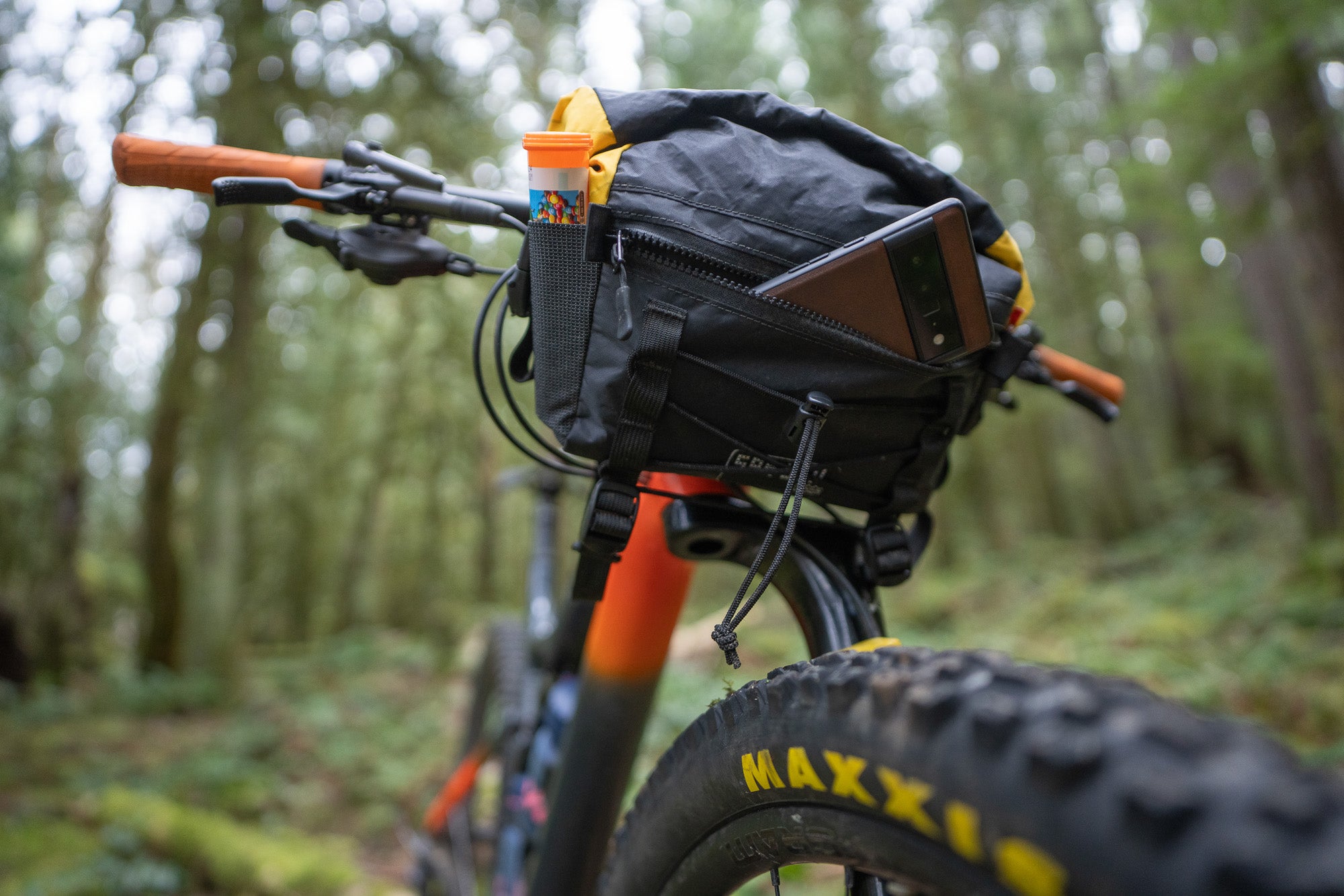 Our Colorado Trail set up is a set of Mini Panniers, Small Frame Bag, 2 Stem Bags, and this Handlebar Bag.