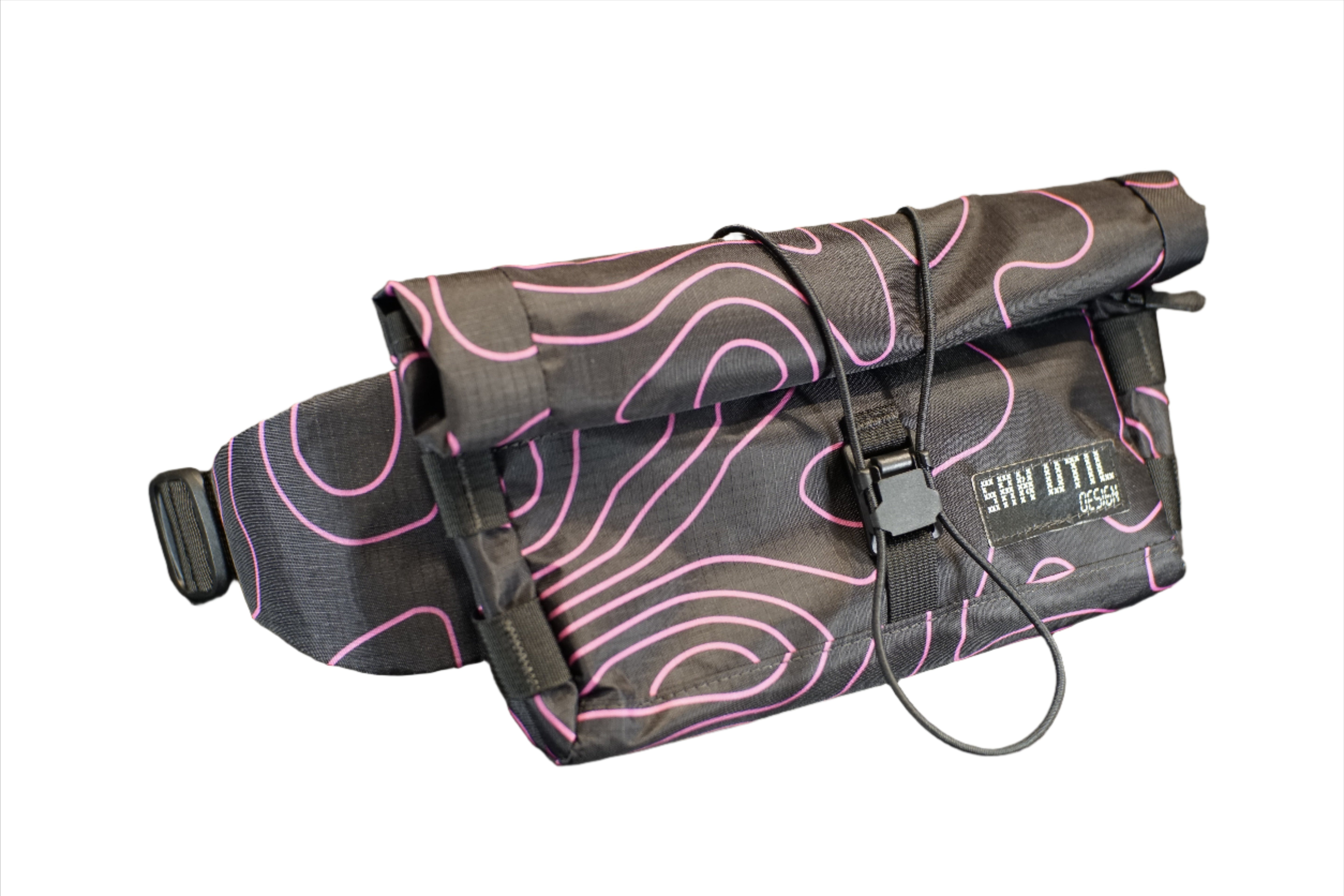 Staying true to our simple and functional design philosophy, the Furtif has a roll top main pocket and a small zipper pocket in the front for a phone and keys. The roll top design covers the zipper to keep that pesky mud and grime off the zipper. A magnetic fidlock buckle keeps the roll top tight but allows for the pack to expand some to overstuff.