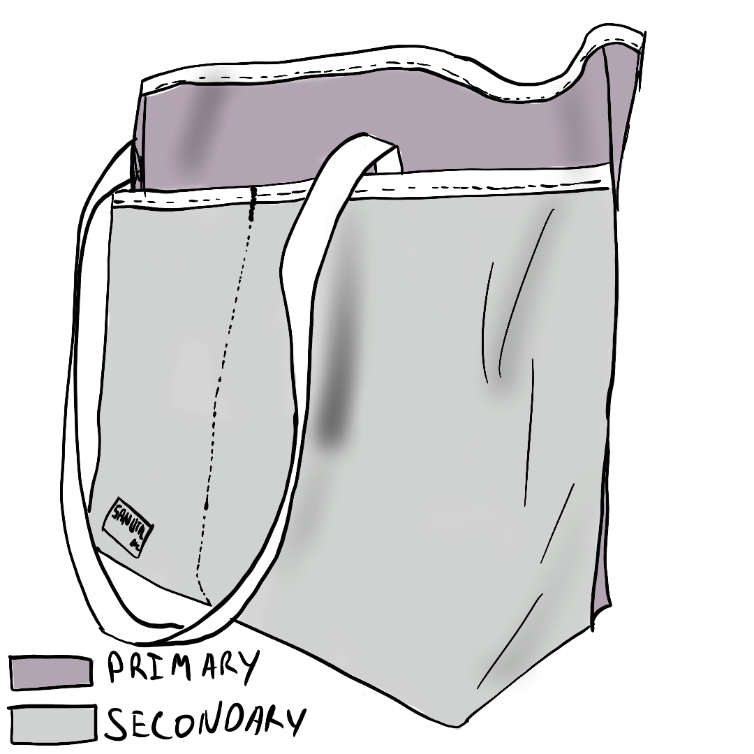 Primary color is the two main panels of the bag, the bottom, and the inside zipper pocket. Secondary color is the outside Pocket.