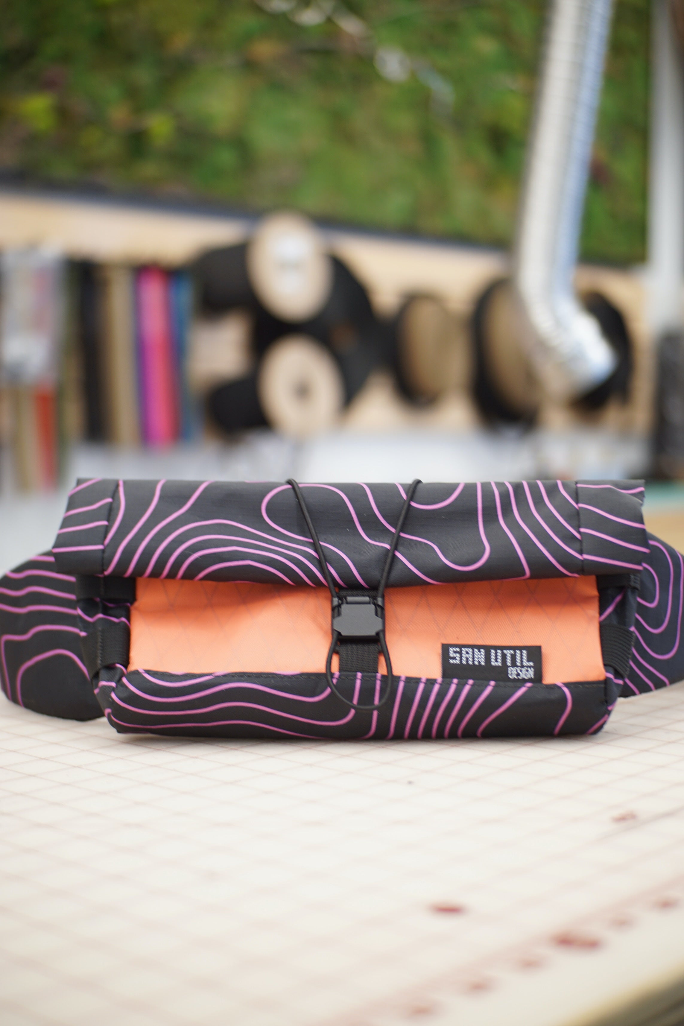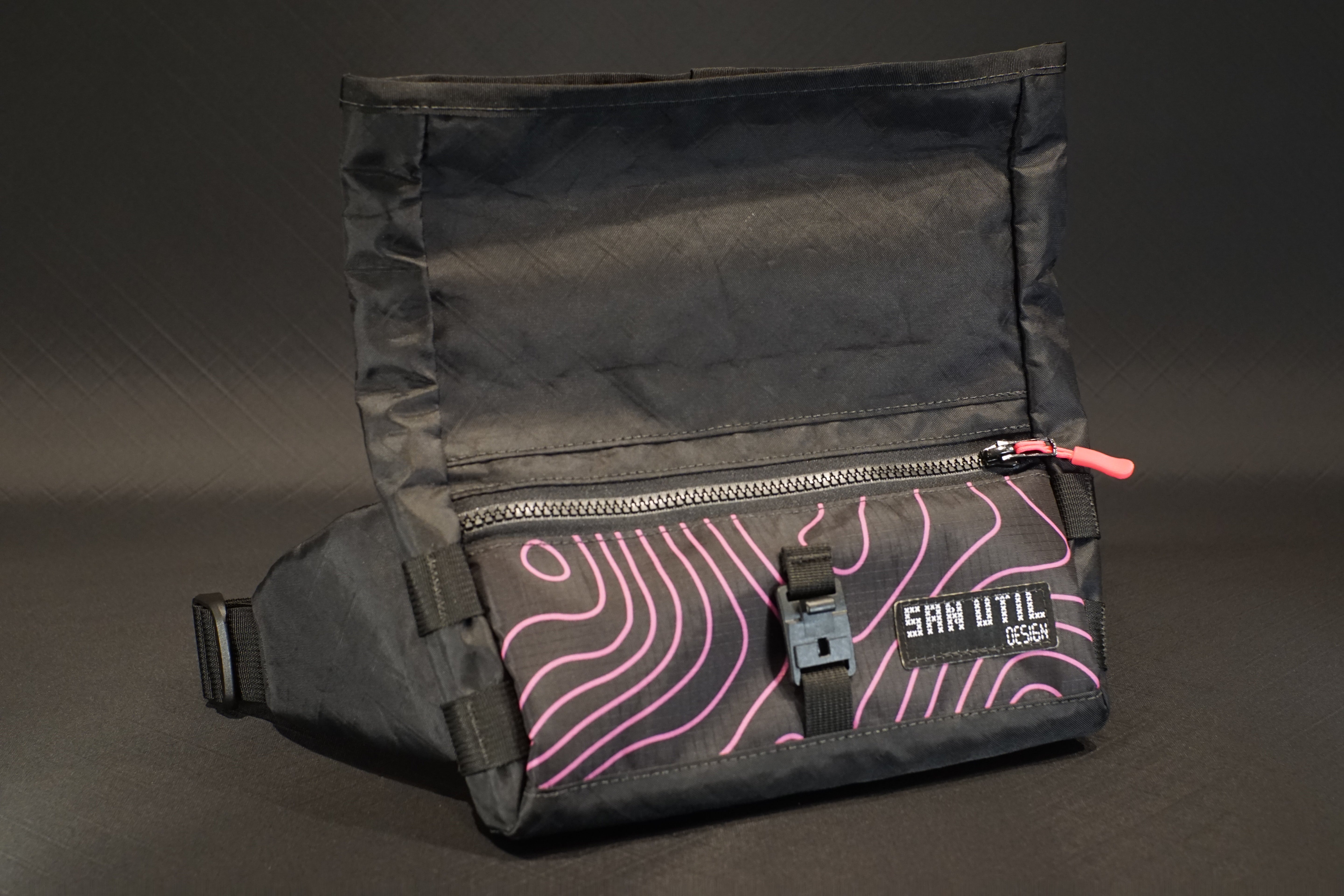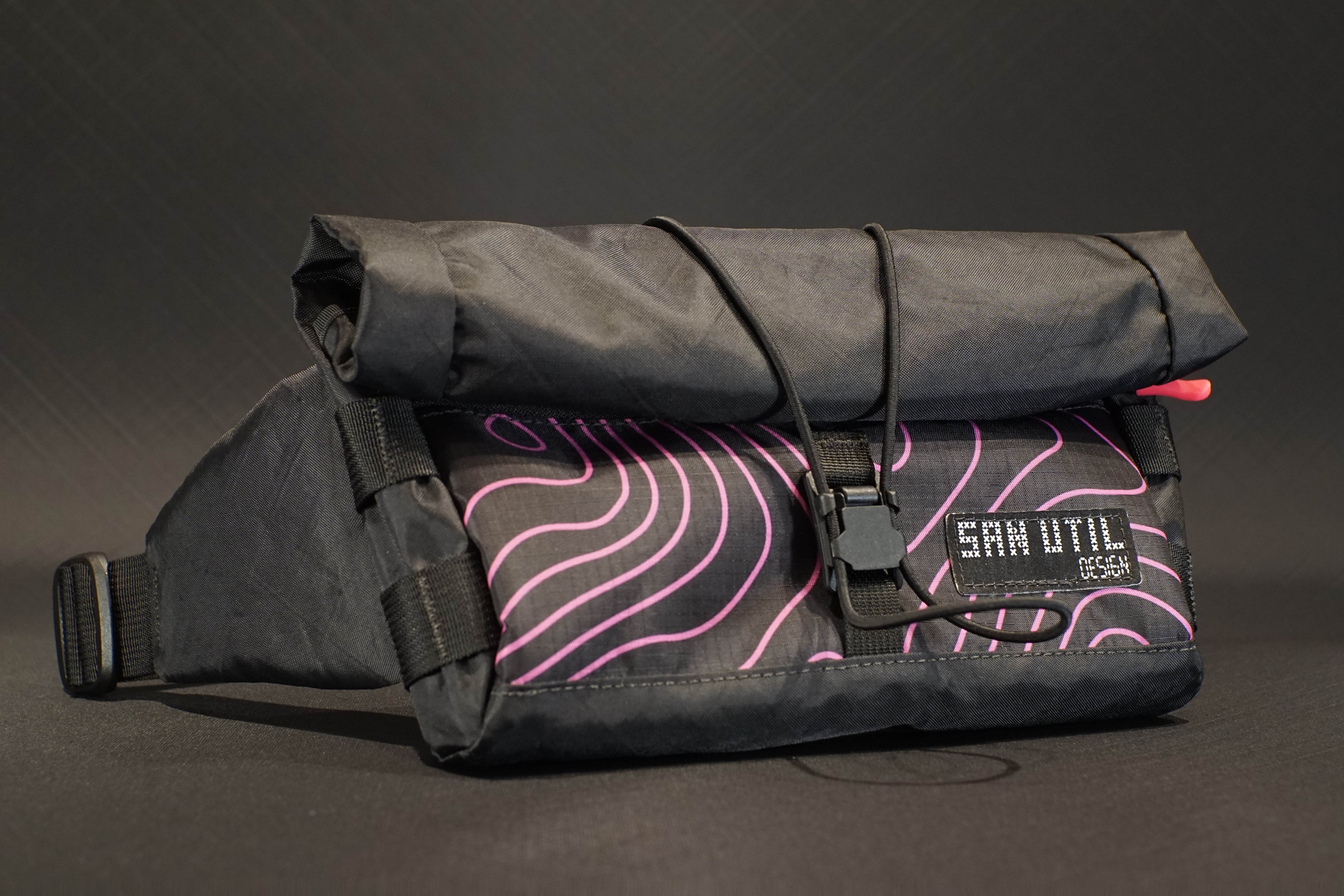Staying true to our simple and functional design philosophy, the Furtif has a roll top main pocket and a small zipper pocket in the front for a phone and keys. The roll top design covers the zipper to keep that pesky mud and grime off the zipper. A magnetic fidlock buckle keeps the roll top tight but allows for the pack to expand some to overstuff.