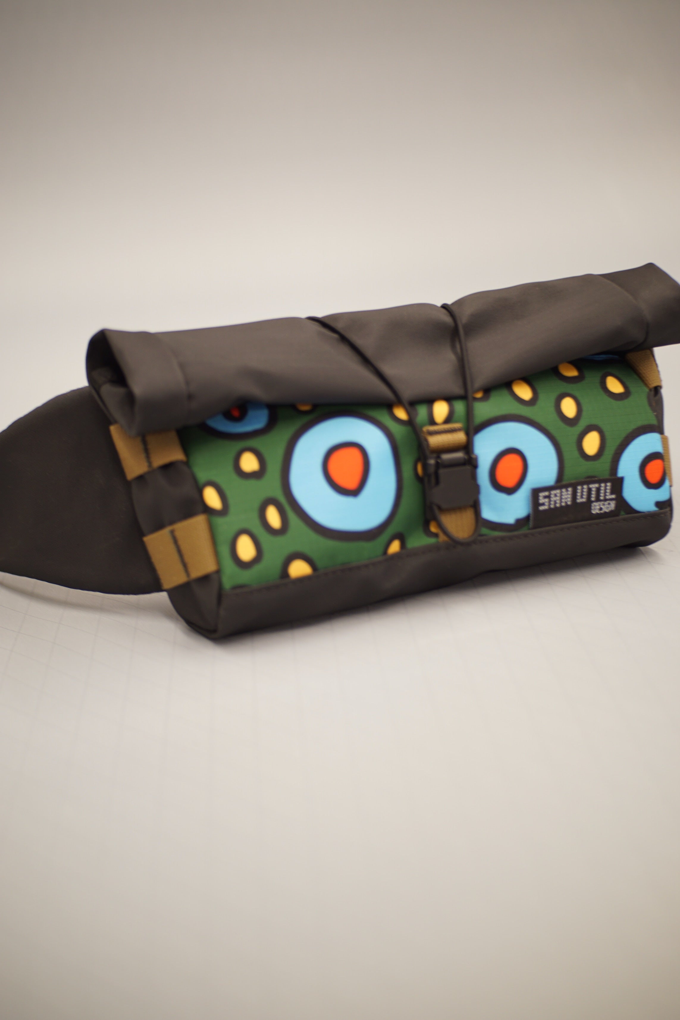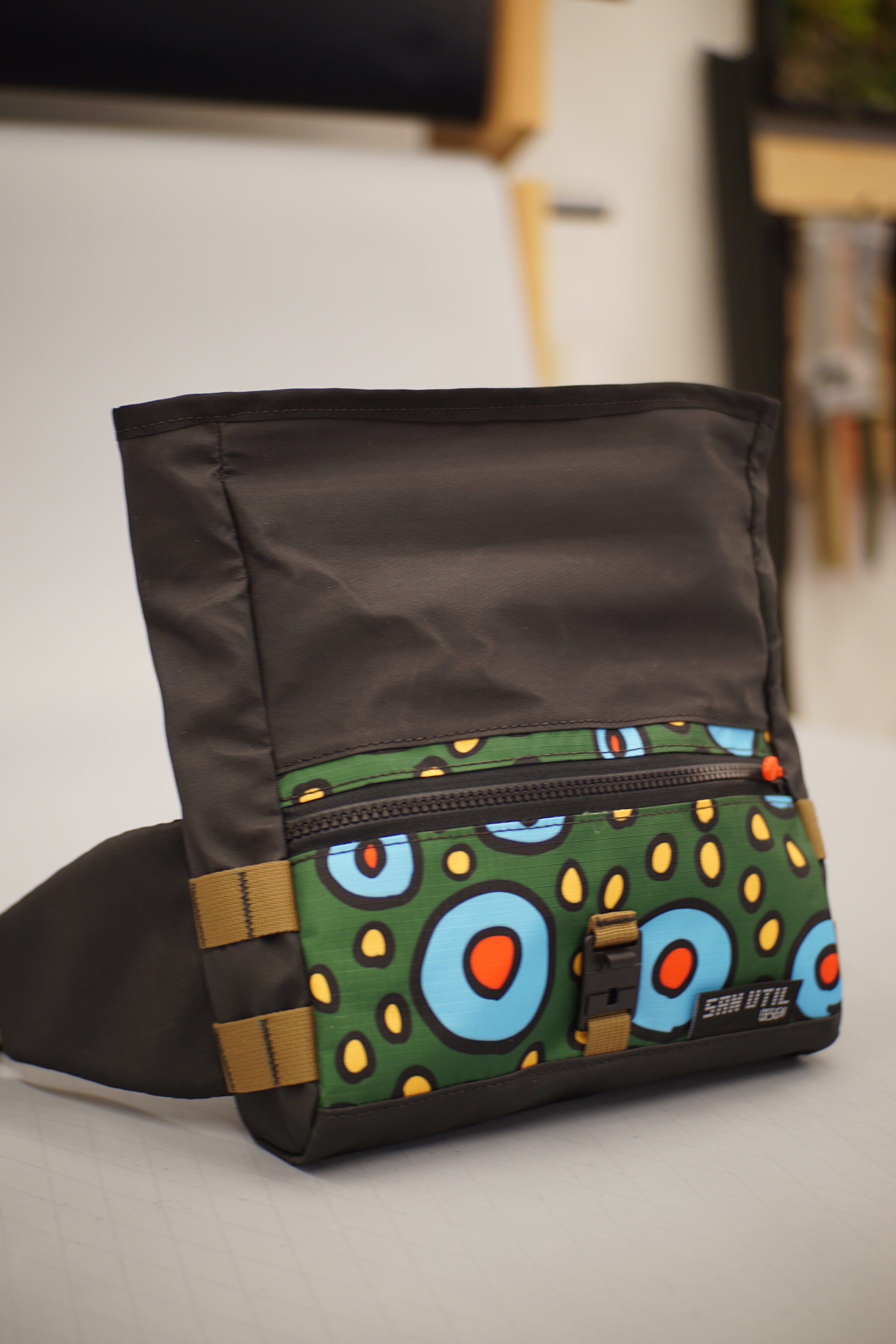 Over the past couple years, we have had the pleasure of working with local artists on some art collabs. We get the art printed on the same outdoor tech fabric that we sew our normal bags out of.